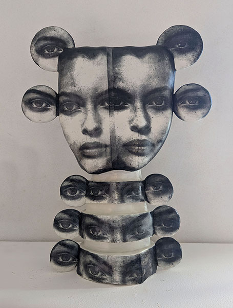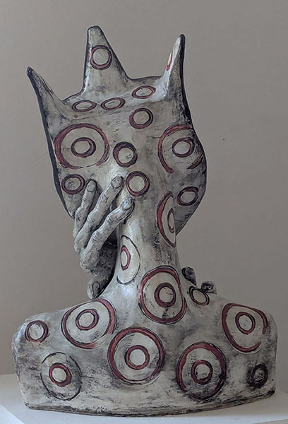 In my sculpture, “Inner Web,” the fingers have metamorphosed into spiders legs. She is entangled in a spider’s web.